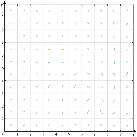 In two-dimensional eddy models (horizontal model and vertical model), the vorticity is usually considered in only one component. In a Cartesian coordinate system, the two-dimensional horizontal vorticity can be simplified as follows: , where u and v represent the velocity components along the x and y, respectively. The two-dimensional eddy is shown in Figure 2, where the partial velocity of the eddy in each direction affects the AUV trajectory.