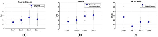 The parameter μi represents the friction coefficient between the ship and the ice. The variable g denotes the acceleration due to gravity. Poisson’s ratio, v, ranges between 0.21 and 0.3. The limit depth of ridge keels for the Baltic Sea can be estimated using the method proposed by Hopkins, Hibler III, and Flato [], as described in Equation (24).