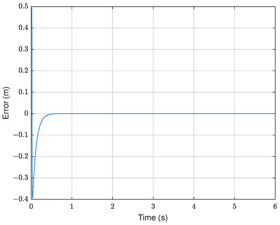 In this model, represents the prescribed performance function designed to manage system errors effectively. The convergence of the prescribed performance function is shown in Figure 1. When the error approaches a specific threshold, , the prescribed performance transformation function comes into play, nonlinearly amplifying the error. This amplification results in a substantial control output, facilitating rapid error convergence. Conversely, when the error is considerably below and nearing zero, the transformation function acts to diminish the error, optimizing control efficiency and accuracy. The transformed error is bounded within prescribed limits, with the upper and lower bounds of the error after transformation being explicitly defined. These bounds ensure that the error remains within acceptable levels, maintaining system stability and performance.