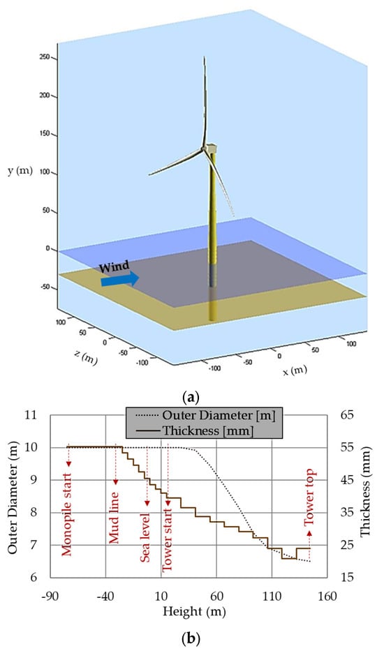- Hu, Y.; Yang, J.; Baniotopoulos, C.; Wang, X.; Deng, X. Dynamic analysis of offshore steel wind turbine towers subjected to wind, wave and current loading during construction. Ocean Eng. 2020, 216, 108084. [Google Scholar] [CrossRef]