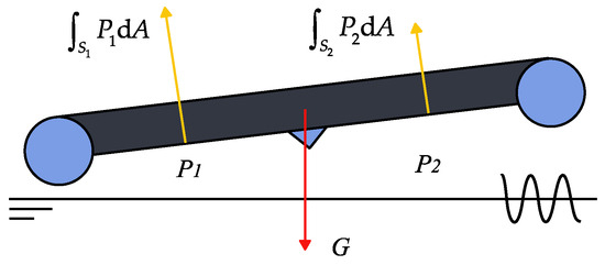 According to the (angular) acceleration, the total external force (moment) of the three degrees of freedom can be obtained, and thus, the pulsating pressure in the air chamber and the (angular) acceleration satisfy the following hovercraft dynamic equilibrium equation [3,4]: