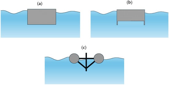 Floating breakwaters: (a) box-type, (b) pontoon-type, and (c) framed-type.