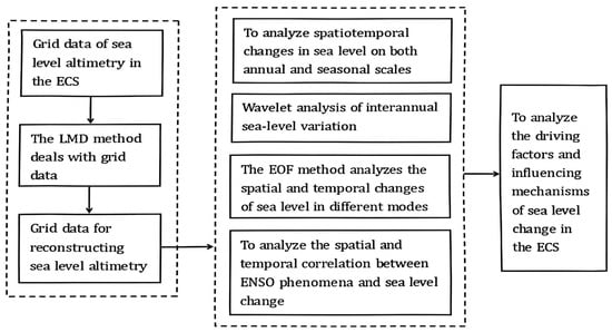 Building upon satellite altimetry data, this chapter employs methodologies including local mean decomposition (LMD), wavelet analysis, the nonstationary sliding correlation analysis method, and empirical orthogonal function (EOF) analysis to investigate the periodic structures and anomalous sea level changes across various time scales in the East China Sea from 1993 to 2020. These sophisticated methods enable a finer-resolution analysis, offering improved precision and the capacity to detect both short-term anomalies and long-term trends. This approach not only enhances our understanding of the mechanisms driving sea level changes but also provides critical insights into potential future scenarios, especially considering the effects of climate change on regional sea levels. The rest of this paper is organized as follows: the materials and methods are briefly presented in Section 2, the results and analysis are presented in Section 3, and the conclusions are presented in Section 4.