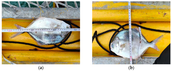 Trachinotus ovatus used in the experiment. (a) Body length; (b) Body height.
