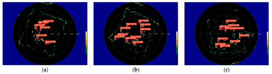 The sonar image data obtained were recorded as video data, with each second corresponding to each second during the spiral measurement. From this image data, 200 fish sonar images were randomly captured and annotated with MakeSense (category—fish). The annotated datasets were then randomly divided into two categories: 160 images were used as training sets, and 40 images were used as test sets.