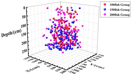 To visually display the distribution of fish at different water layers, sets of data from the 100 fish, 150 fish, and 200 fish datasets were selected (numbered 4, 10, and 16) as an example to illustrate the following in this section.