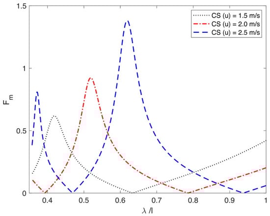 Figure 12 shows the effect of CS on the non-dimensional vertical wave force Fm for versus non-dimensional wavelength . As the values of CS increase, the vertical wave load on the membrane increases. Conversely, for an intermediate wavelength, the vertical wave load on the membrane increases with increasing CS.
