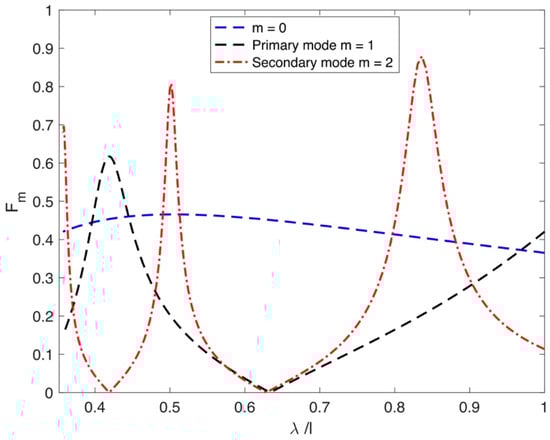 In Figure 14, the effects of zero, primary, and secondary modes of the HFFM on the vertical wave force where and CS versus are plotted. It is observed that the vertical wave force increases with an increase in modes of oscillations. The tertiary mode exhibits a sharp peak in vertical load at a smaller wavelength. This phenomenon arises from generating small waves at the edges of the HFFM. These waves break before reaching a critical energy level.