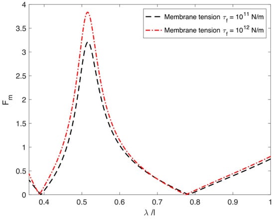 Effects of membrane tension on the 3D deflection where , m = 1, and .