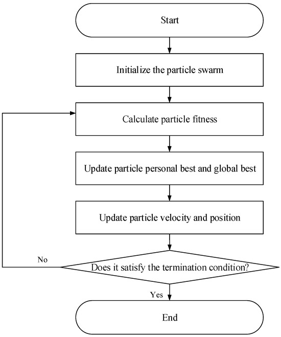 In each iteration, the fitness value of each particle is computed based on its current position using the fitness function. A smaller fitness value indicates a better position for the particle. For each particle, if the current fitness value is less than its historical best fitness value, the particle’s individual best position is updated. Among all particles, the one with the smallest fitness value is identified, and its position is designated as the global best position. Subsequently, the velocity and position of each particle are updated according to the following equations: