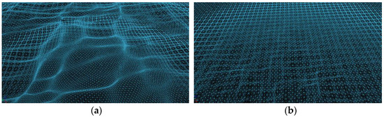 Waterbody mesh transformation: (a) Near-distance water wave model; (b) Far-distance water LOD optimization model.