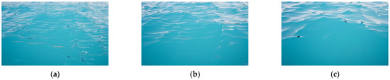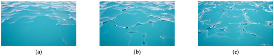Waves with different heights: (a) 1 m; (b) 2 m; (c) 3 m.