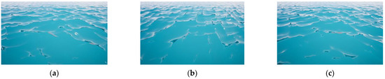 Moreover, the water system effects are illustrated in Figure 16, Figure 17 and Figure 18. The motion of waves exhibits inherent randomness; thus, when simulating waves, multiple Gerstner waves with varying directions and parameters are superimposed. In this test, by configuring different wavelength, wave height, and wave direction parameters, we validated the simulation effects of the water system.