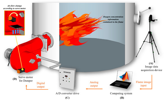 Previous studies developed a system for real-time monitoring of air pollutants and oxygen concentration by analyzing two-dimensional HSV images collected using accessible webcams, which identified spectral characteristic differences across various fuel-air ratios [10]. In subsequent research, this monitoring system was utilized as a control input to propose an oxygen concentration control system that could be easily applied to marine boilers. The proposed system models the correlation between oxygen and combustion based on operational data and uses an IMC-PI closed-loop control structure, effectively controlling exhaust gas emissions and reducing the production of air pollutants [11].