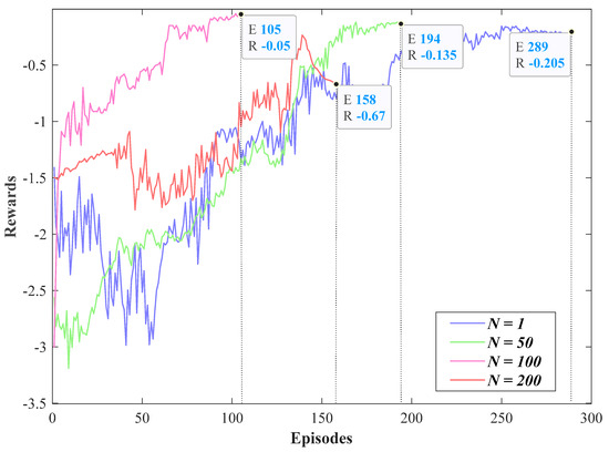 A mini-batch is randomly sampled from the experience replay to update such that the loss function is minimized. The -function is updated as shown in Equation (7).