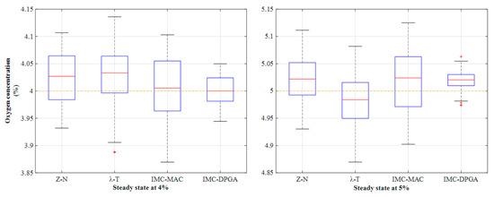 The state vector of the IMC-DPGA for ICC system consists of the oxygen concentration error, the rate of change of the error, the current oxygen concentration, and the current , as shown in Equation (15).