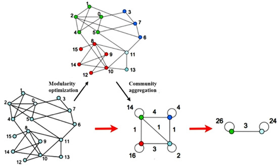 Figure 14 shows the comprehensive evaluation index values of the different grouping schemes when the ships in the study area (shown in Figure 9) are divided into ship groups using the FMOASC algorithm. By analyzing Figure 14, it can be found that the highest comprehensive evaluation value (I = 0.5828) is the division scheme with 10 ship groups, so this division scheme is adopted. The ship group division results obtained by the three algorithms are shown in Figure 15.