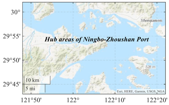 The core port area of Ningbo-Zhoushan Port in was selected as the research water area. It is a unique deep-water port with the highest concentration of ship traffic in the world. There are more than 620 berths here, including about 170 large berths over 10,000 tons and more than 100 ultra-large deep-water berths over 50,000 tons. Restricted geographical area, diverse ship types, dynamic ship movement behavior, and complex navigation environment make ship traffic safety management in this region extremely challenging. Therefore, the waters are typical of complex port waters.