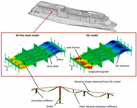 - Avi, E.; Laakso, A.; Romanoff, J.; Remes, H.; Lillemäe-Avi, I. Coarse Mesh Finite Element Model for Cruise Ship Global and Local Vibration Analysis. Mar. Struct. 2021, 79, 103053. [Google Scholar] [CrossRef]