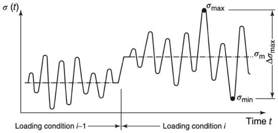 - Ariduru, S. Fatigue Life Calculation by Rainflow Cycle Counting Method. Master’s Thesis, Graduate School of Natural and Applied Sciences of Middle East Technical University, Ankara, Turkey, 2004. [Google Scholar]