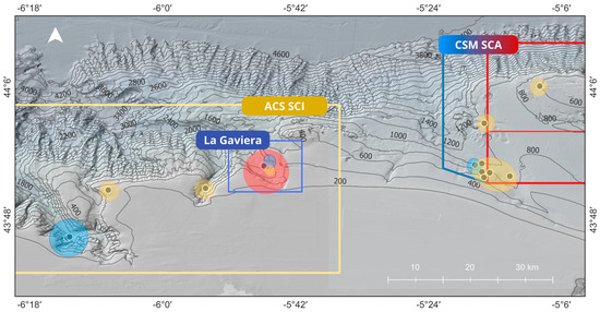 - Rodríguez-Basalo, A.; Sánchez, F.; Punzón, A.; Gómez-Ballesteros, M. Updating the Master Management Plan for El Cachucho MPA (Cantabrian Sea) Using a Spatial Planning Approach. Cont. Shelf Res. 2019, 184, 54–65. [Google Scholar] [CrossRef]