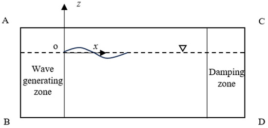 The wave generation speed boundary is based on the fifth-order Stokes wave theory to generate nonlinear waves. According to the analytical form of the fifth-order Stokes theory proposed by Fenton [28], the fluid quality point velocity equation is as follows: