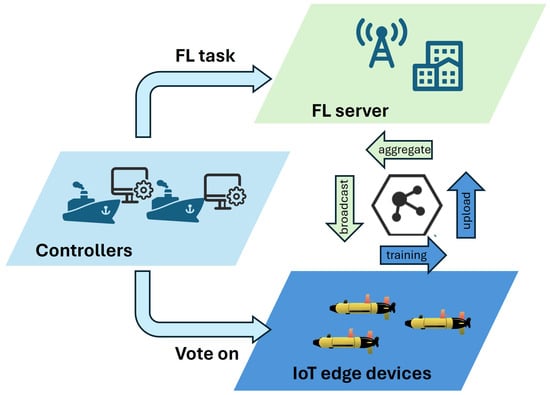- An underwater wireless IoT network that enables FL is designed to empower IoT technology. The network consists of edge devices, an FL server, and controllers, where the controllers can assist FL.