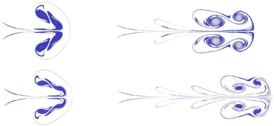 - Cheng, M.; Lou, J.; Lim, T. Leapfrogging of multiple coaxial viscous vortex rings. Phys. Fluids 2015, 27, 031702. [Google Scholar] [CrossRef]