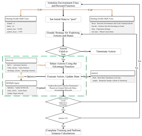 - Advanced solution algorithm. We present the Dueling Double Deep Q-Network (DQN) technique, which combines the advantages of separate value and advantage functions, to filter states and reduce overestimation in the target network. This technique enables the more precise selection of iterative states and actions.
