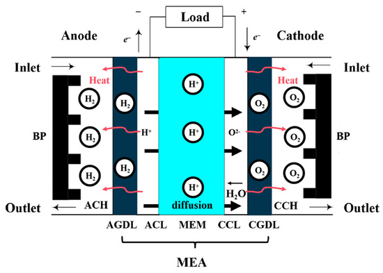 Schematic diagram of a PEMFC.