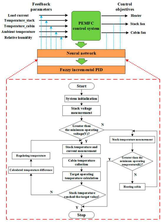 Scholars have conducted extensive research on hydrogen-powered propulsion systems for ships in various coastal port scenarios. Nivolianiti et al. [11] (2024) optimized the energy management strategy for PEMFCs, energy storage systems, and internal combustion engines using a control method based on fuzzy logic rules, resulting in reduced fuel consumption. Truong et al. [12] (2024) optimized the energy management and power allocation of PEMFCs in a hybrid energy storage system on ships, achieving an improved state of charge in the energy storage devices. Jung et al. [13] investigated PEMFC-based energy management strategies based on deep reinforcement learning, achieving a power generation efficiency of 60%, but the operating costs were 0.7% to 9.2% higher than those obtained using dynamic programming-based algorithms. For HFCs in power generation systems at coastal stations in Antarctica, specific meteorological characteristics such as low temperatures and strong winds must be considered, as they can negatively impact the systems, leading to issues such as cold start failures, rapid performance degradation, and reduced load-carrying capacities. Therefore, control strategies for the initial and operating conditions of PEMFCs regarding start-up, operation, and power output are crucial to mitigate these impacts [14].