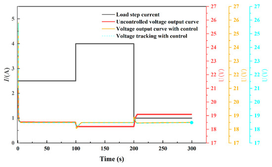 The experimental operating conditions are set as follows: The load current is maintained at 2.5 A for the first 100 s and then abruptly changed to 4 A at 100 s, after which it is subsequently shifted to 1 A at 200 s. Appropriate parameters are configured for the controller to observe the variations in the output voltage of the PEMFC. Figure 18 presents a comparison of the dynamic response of the PEMFC’s output voltage to step changes in the load current, both with and without the controller in place, under the given load step changes.