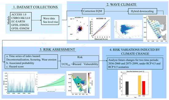 The workflow of the methodology developed to assess the impact of climate change on UCH risk due to wave-induced hazards.