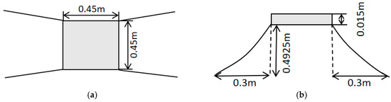 Schematic diagram of floating body unit size: (a) vertical view, (b) side view.