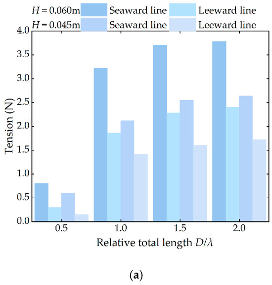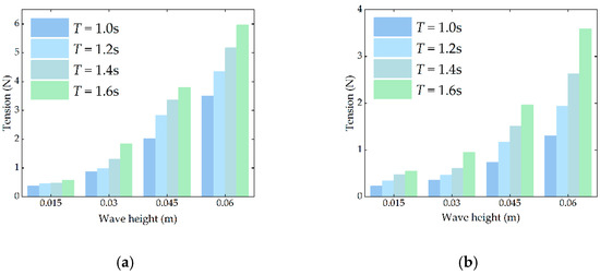 Influence of wave height on the mooring tension: (a) seaward line, (b) leeward line.