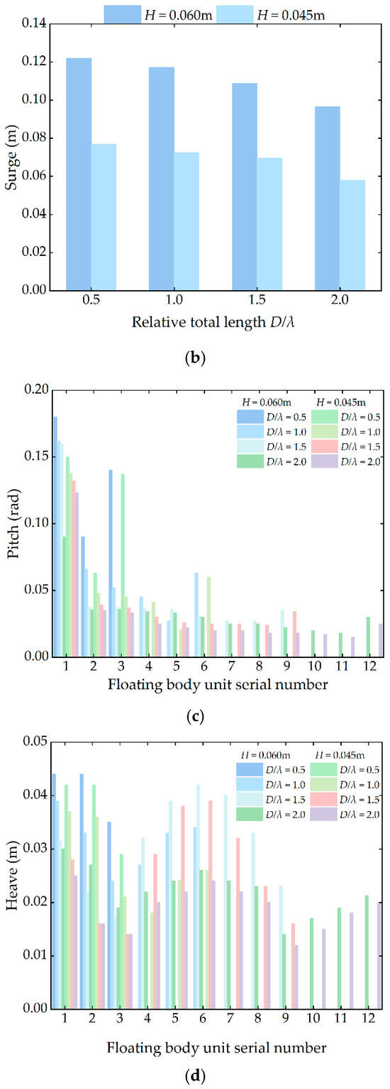 3.2.2. Influence of Different Wave Heights and Periods on the Floating Body Unit