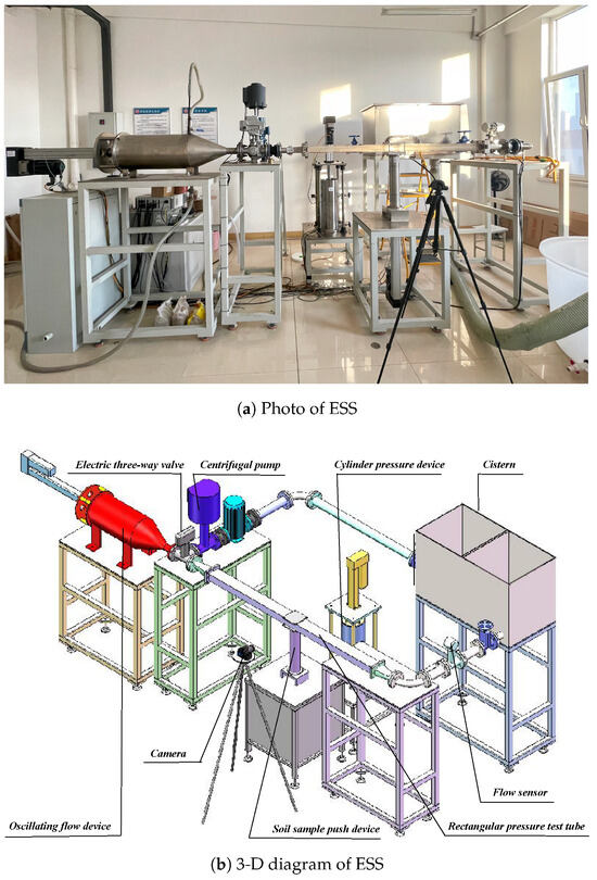 Section 2, the design concept of the in-house-developed erosion–seepage system (ESS) is provided, the experimental procedure is outlined and the properties of the soil samples are provided. In
