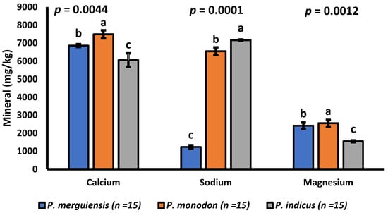 | Parameters | P. merguiensis (n = 15) | P. monodon (n = 15) | P. indicus (n = 15) | p-Value |