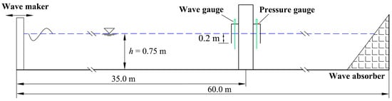 where S and ω are the stroke and angular frequency of the wave-making plate, respectively. The stroke corresponding to each wave condition has been calibrated. A damping zone based on the source-term method was placed at the end of the flume for wave absorbing.