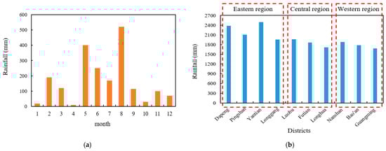 Rainfall data of Shenzhen. (a) Monthly rainfall. (b) Regional rainfall.