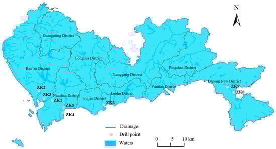 The data sources of this article include groundwater detection data and hydro-geological and engineering-geological conditions in the geological survey reports of actual buildings or subway projects. These data are distributed at different locations in the Shenzhen coastal area and can reflect the changes in the groundwater level in this area as well as the characteristics of the stratum structure and geological structure. Meanwhile, this article also obtains the rainfall data of different years from meteorological monitoring data, which are helpful for analyzing the relationship between seawater intrusion and rainfall. In addition, this article also cites the data on the area changes in seawater intrusion in different years from reference documents. These data can help us understand the development trend and scale of seawater intrusion. Finally, this article also refers to the early-warning and emergency measures on the government official websites. These measures and policies can provide us with effective methods and means to deal with seawater intrusion and serve as the basis for calculating the resistance index of geological environment resilience.