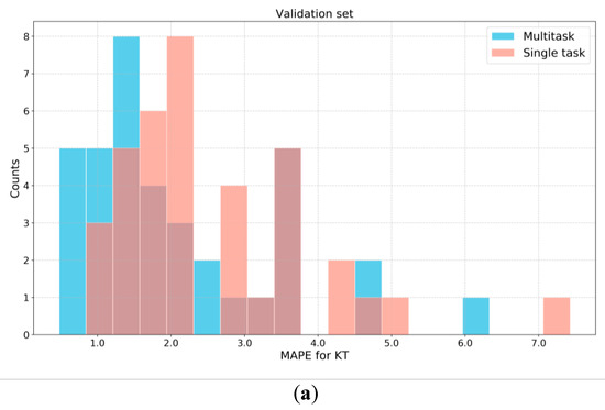 The prediction accuracy of the two models was evaluated as follows. For both models, each propeller’s hydrodynamic prediction curve was discretized at intervals of ΔJ = 0.05, and the MAPE between the predicted and actual experimental values over the entire advance coefficient range was calculated. This was further used to compute the MAPE for all test cases in the validation set. Table 2 presents the prediction accuracy for the single-task and MTL models on the validation set.