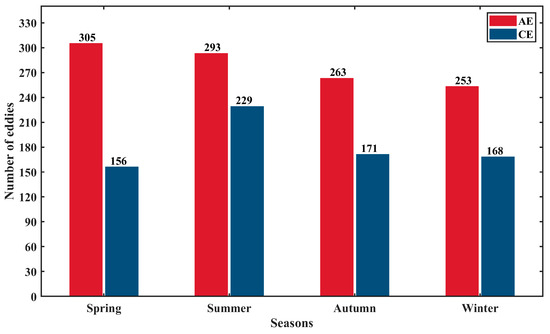 The number of eddies generated in different seasons.