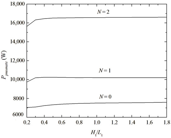 Effect of the ratio H1/L1 on the Ppneumatic for different configurations of deflectors.