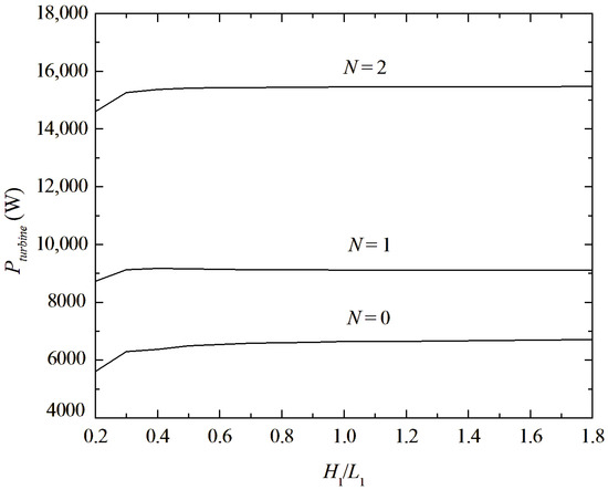 Effect of the ratio H1/L1 on the Pturbine for different configurations of deflectors.