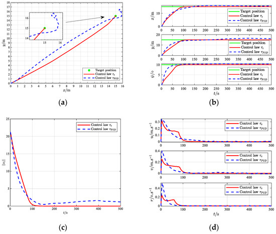 Obviously, from Equation (36) for all and arbitrary positive constant , there exists a time constant such that for all , . Therefore, falls within , and by properly choosing , , , , , , , and to make them arbitrarily small, Equation (33) is satisfied. Therefore, the FOP can maintain the desired position and heading with arbitrarily small errors, and theorem 1 is thus proved.□