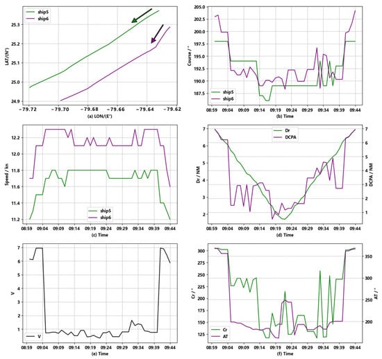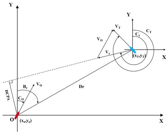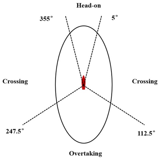 In the context of maritime navigation, DCPA and TCPA are crucial parameters for assessing encounter situations []. To obtain a comprehensive understanding of the ship collision-avoidance process, we integrate DCPA, TCPA and Dr as criteria for determining encounter situations, as follows: