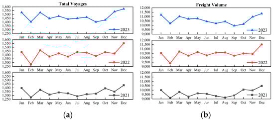 46]. The continuous growth of global LNG demand and the acceleration of energy transition have driven the scale of LNG shipping, especially after the outbreak of the Russia–Ukraine conflict, which has led to the LNG shipping network experiencing significant changes. The analysis of the global LNG shipping network at different time scales (by year and month) shows that the scale of shipping is the most turbulent in 2022 (