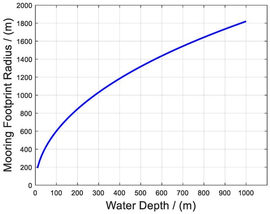 The relationship of the mooring footprint radius and water depth.