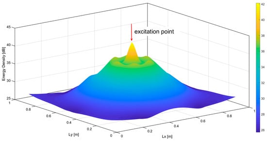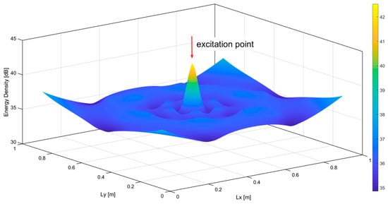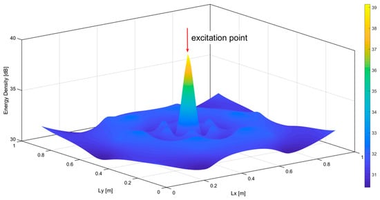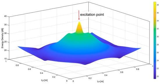 The energy distribution predicted by the method proposed in this article. Here, the frequency f = 487 Hz, and the damping η = 0.20. The reference value of energy density is 1 × 10−12 J/m2.